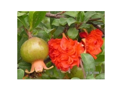 花期从5月始花至10月份,长达5个月,达到了花果同期、同树,成年树花量达千朵以上。果实大,近圆形或扁圆形;皮光洁,黄中透红,厚0.3~0.5cm,萼片5~8裂;籽粒红色,粒大、肉厚、汁多,味甜微酸,风味佳,含可溶性固形物17%~19%,富含糖、维生素及多种微量元素。9月下旬成熟,可贮至翌年春季。该品种适应性强,抗旱耐瘠,以短枝结果为主,结果枝组多为单轴式。结果早,丰产,栽后当年成花,次年见果,盛果期树单株产量可达50kg以上。牡丹石榴可赏花、可食果,叶片兼有吸收SO2气体之功能;既可大田生产,又可用于园林美化,是集食用、观赏、绿化、环保于一体的果中珍品,发展潜力大。